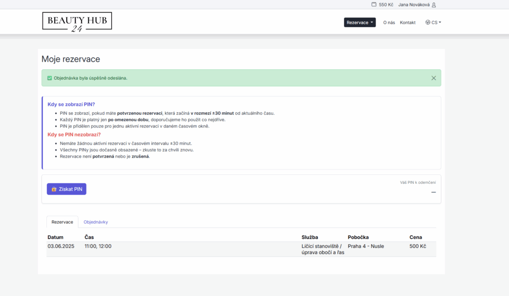 2. After confirming your reservation, a PIN for the key box will appear in your user dashboard.
