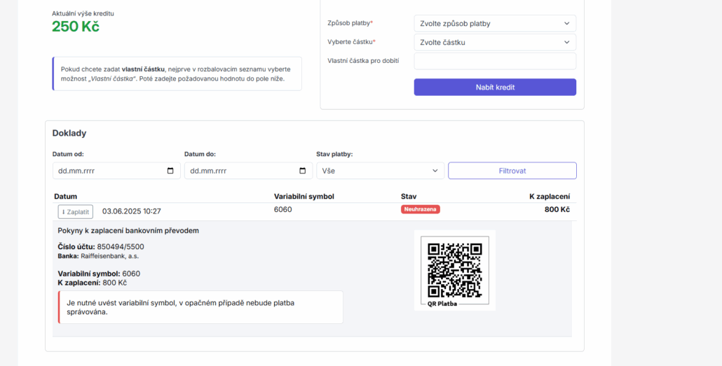3. If you want more hours, top up your credit – choose the amount and pay easily via QR code.